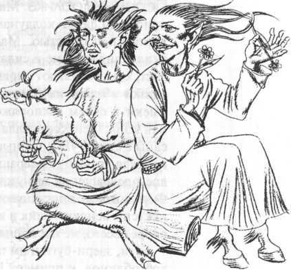 У фей. Среди поверий, связанных с феями, существует и такое, согласно которому эти прекрасные создания имеют какое-либо уродство, и им не всегда удается его скрыть. Например, у некоторых скандинавских фей красивые лица, однако с обратной стороны они пустые. Злобные, но прекрасные глайстиги из Северной Шотландии носят волочащиеся по земле зеленые платья, чтобы скрыть козлиные копыта. Шетландские хенки (hen — «курица») получили свое имя из-за того, что они прихрамывают во время танцев. Кроме того, «феям приписываются уродства, которые отличают их от простых смертных. На острове Малл утверждают, что у них лишь одна ноздря, второй же дырки нет» . А бин си уж не по каким параметрам не назовешь красивой: «Ее отличает необычайная прожорливость (за один присест она съедает корову), устрашающий