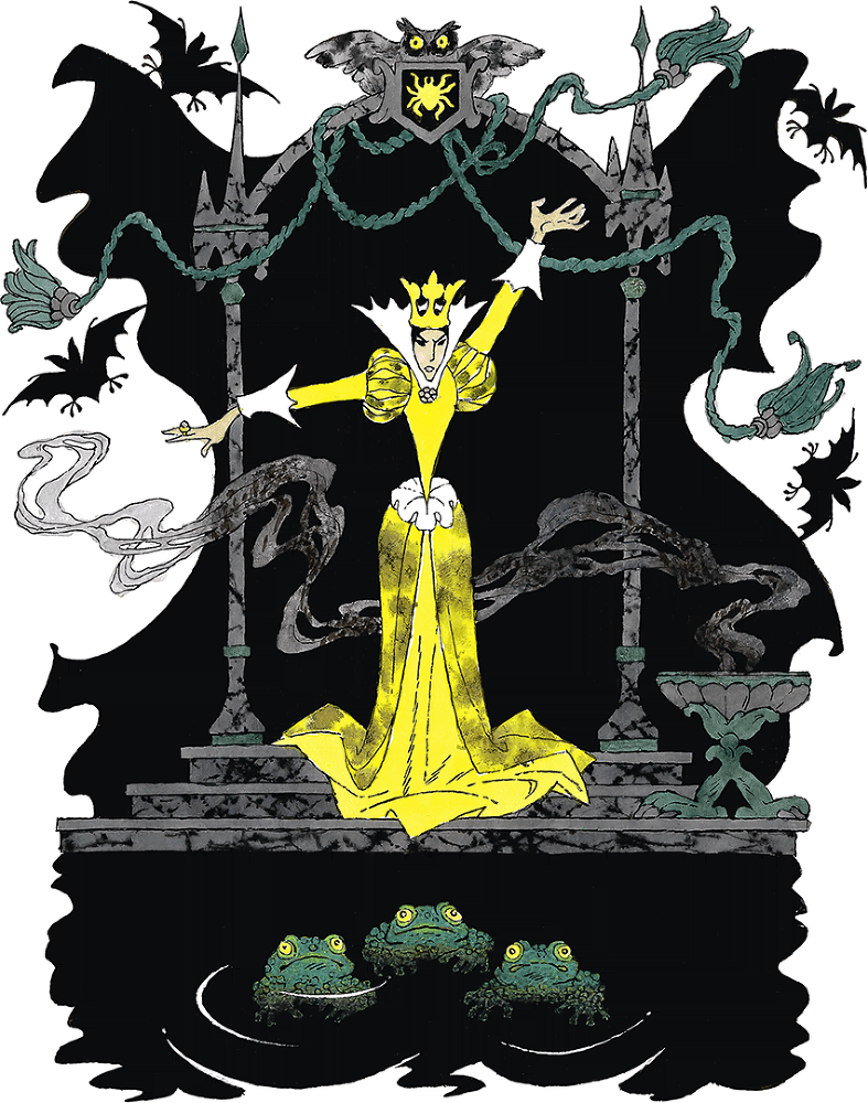 – А ты прыгни Элизе на лоб – пусть она станет такой же безобразной, как ты. Тогда и родной отец её не узнает… Ну, а ты ляг ей на сердце, – шепнула королева третьей жабе, – пусть она станет злой, чтобы никто её не любил.