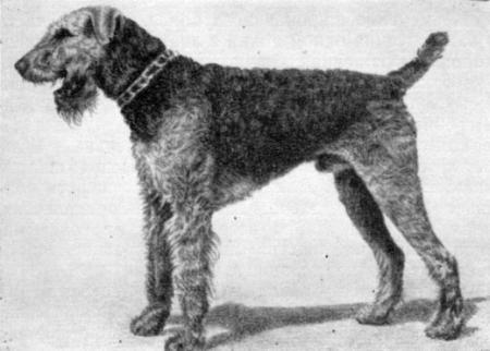 Эрдельтерьер (рис. 20). Выведена порода в Англии во второй половине XIX века. Название свое получила по имени реки Эйр, где проводилась работа по ее выведению. Собаки этой породы выносливы и неприхотливы. Во время Великой Отечественной войны их использовали в качестве связных и минорозыскных собак, а в мирное время они могут быть применены как караульные розыскные собаки.