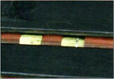 При всей простоте «спички» радист в случае необходимости мог передать базовой станции сигнал «Работаю под контролем противника», всего лишь изменив направление движения щупа при передаче цифр 0 или 5, в контактных канавках которых, ближе к одному из их концов, имелся тонкий разрыв. Нормально 0 и 5 передавались только справа налево, а значение «тревога» они принимали в случае передачи слева направо. Этот разрыв (фото 82) в переданном знаке распознавался на экране панорамного устройства приёмной аппаратуры базовой станции.
