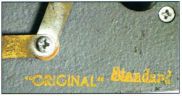 На фото представлена модель с хромированным без позолоты основанием. Имеется возможность регулировки скорости передачи не только положением грузиков на шпильке маятника, но и изменением длины плоской стальной пружинящей вставки (англ. mainspring), которая фиксируется здесь двумя маленьким винтами.