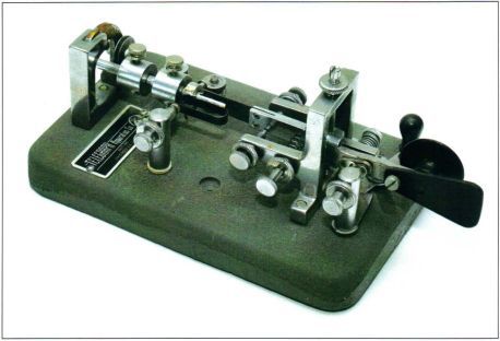 «Semi-Automatic Telegraph and Radio Code Transmitter Mac Key Manufactured Adjusted and Guaranted by T.R. Me Elroy Worlds Fastest Radio Telegrapher Boston Massachusetts».