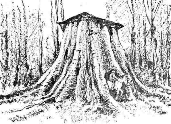 В дупле пня такого эвкалипта около Джипсленда австралийский переселенец устроил себе жилище и даже конюшню для лошади.