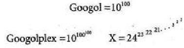 Поисковый интернет-портал Google (произносится Гугл) получил свое название от числа, название которого, правда, пишется чуть иначе — googol (гугол), значение которого можно записать как единицу со ста нулями. Есть еще большее число, названное googolplex (гуголплекс) — это единица, за которой следует гугол нулей. Ни гугол, ни гуголплекс не имеют никакого практического применения за исключением иллюстрации того факта, что существуют абсурдные огромные числа. В наблюдаемой вселенной нет никаких объектов, количество которых составляло бы гугол. А гуголплекс — это такое огромное число, что его даже не записать. Поскольку количество нулей в этом числе — гугол, а даже количество атомов или кварков во вселенной меньше, вам никогда не написать это число на бумаге, сколько бы у вас ни было бумаги и каким бы мелким почерком вы ни писали.