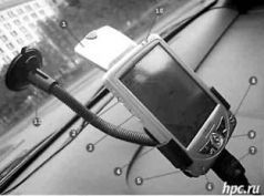 Крепится держатель прямо на лобовое стекло. Причем, отодрать потом его присоску очень и очень проблематично. Мне не удалось этого сделать даже двумя руками. От применения радикальных физмер остановило только опасение за целостность лобового стекла и здравый смысл. Поразмыслив немного и осмотрев держатель, обнаружил на присоске небольшой ярлычок. Если за него потянуть, то присоска легко отходит. Правда, особой необходимости в ежедневном выполнении этой процедуры нет, поскольку компьютер можно легко снять с держателя, а держатель оставить на стекле.