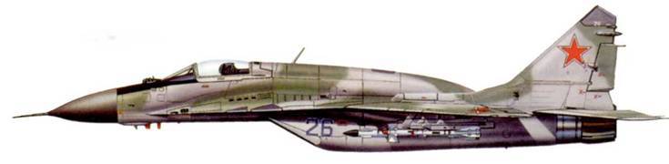 В первую неделю войны в Заливе ВВС Ирака потеряли в воздушных боях с авиацией многонациональных сил порядка восьми истребителей МиГ-29. Летчики союзников были подготовлены лучше пилотов ВВС Ирака, а международная авиация, пользуясь тотальным количественным и качественным превосходством, сразу же установила абсолютное господство в воздухе. Бортовой номер изображенного на рисунке самолета – 29070.