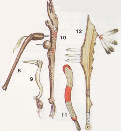 9 — дубинка из рога; 8, 10, 12 — Сиу; 11 — Юго-Запад