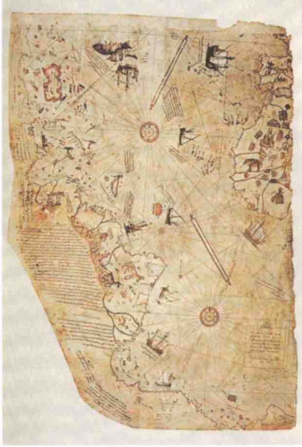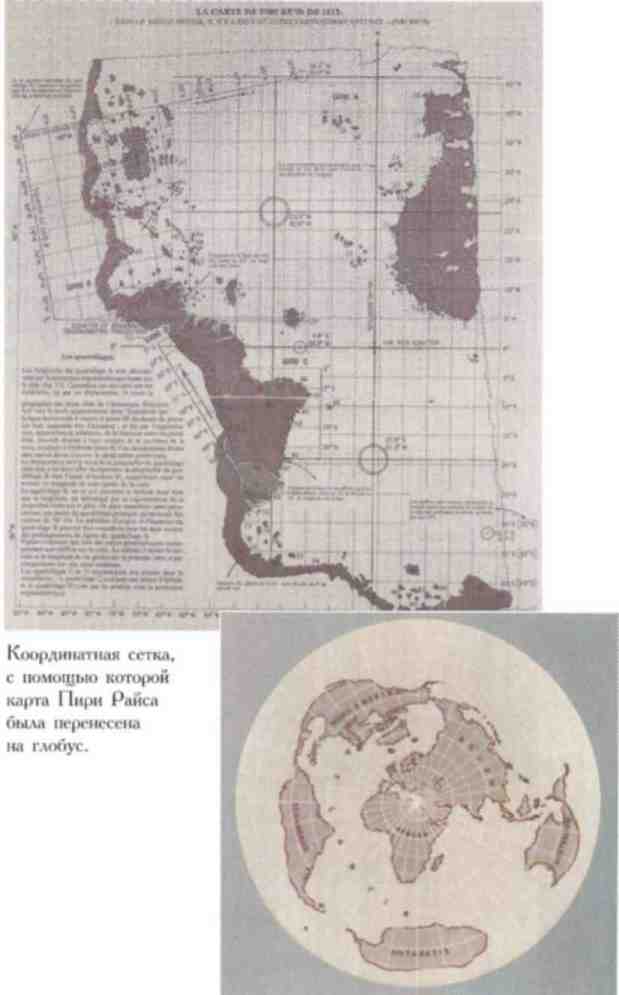 Карта Пири Райса. Внизу видна свободная ото льдов Антарктида с прилегающими к ней островами.