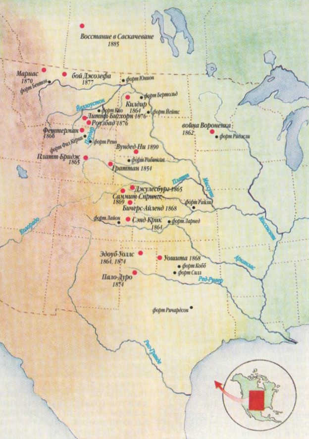 К первым белым чужеземцам, проникавшим в степи, индейцы в основном относились дружелюбно. До 1820-х годов случались лишь небольшие стычки, и то не с войсками, а с торговцами, охотниками, еще немногочисленными эмигрантами; на юге — с мексиканцами и техасцами, которые угоняли у индейцев южных равнин лошадей и похищали детей. Кайова, Команчи, Арапахо, Кайова-Апачи в свою очередь совершали набеги в Мексику и южный Техас. Они уводили лошадей, мулов, захватывали пленников, а нередко возвращались и со скальпами своих врагов. В центральных и северных равнинах неприятности белым доставляли Ассинибойны, Сиу, Чейенны, Пауни.