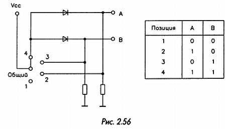 На рис. 2.56 показан шифратор с четырьмя входами и двумя двоичными выходами.