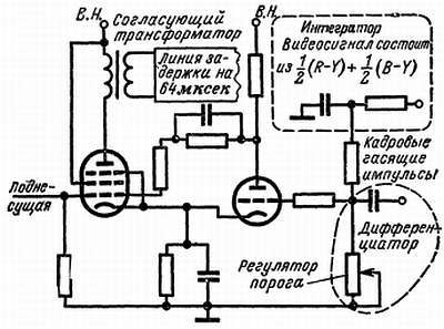 Рис. 77. Синхронизация и запирание канала цветности триггером Шмитта.