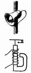 Н. — Я знаю, в чем заключается эта хитрость: именно такой метод применяется в головных телефонах или в старых магнитных громкоговорителях. Но скажи мне, нельзя ли здесь использовать тот же метод, что и в динамических громкоговорителях, и заставить подвижную катушку приводить в действие контакт?