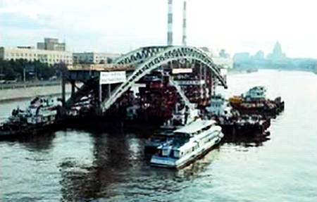 Но все, в конце концов, обошлось благополучно. Только при перевозке Андреевского моста где-то в середине пути одна из барж нечаянно царапнула днищем по дну Москвы-реки. Сигнал тревоги мгновенно поступил на пульт ответственного за передвижение.