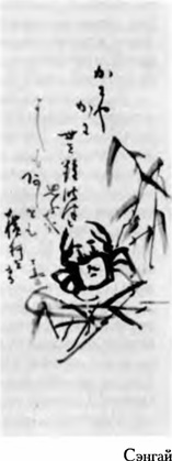 По-японски «хороший» — ecu, а «плохой» — аси. Но эти слова обозначают еще и камыш или тростник. На рисунке изображен краб, который пробирается вдоль кромки воды среди камышовых зарослей. В стихотворении сказано: