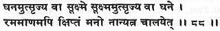 (88) Хотя внимание может перемещаться от глубоких звуков к тонким и от тонких к глубоким, ум никогда не должен перемещаться к различным объектам, отличным от звука.