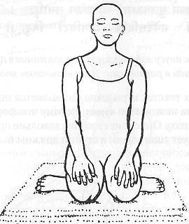Сначала сядьте в ваджрасану — колени вместе, ступни под ягодицами.